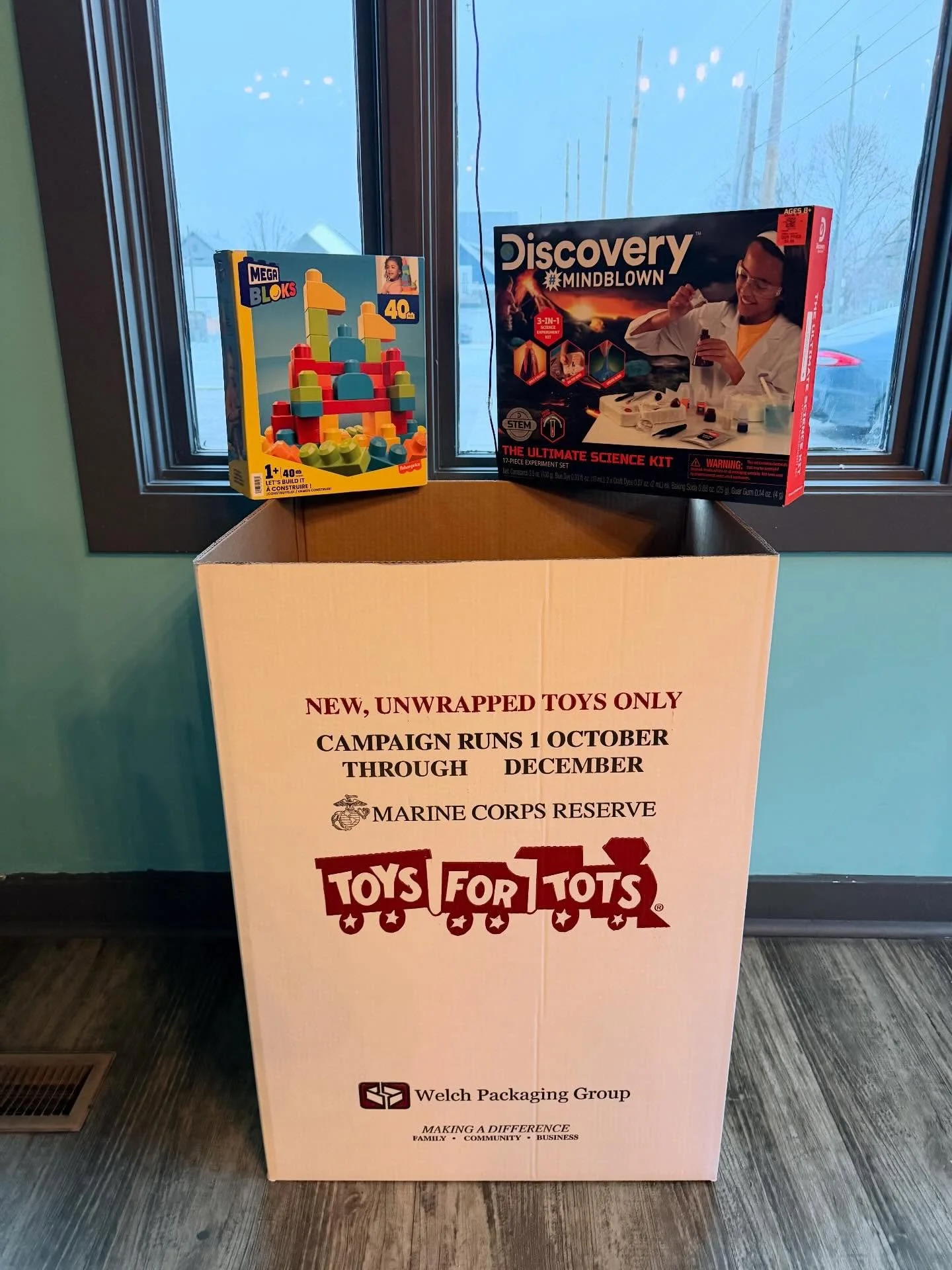 Now through Dec 17th, bring in a new, unwrapped toy, drop it in our collection box, and he